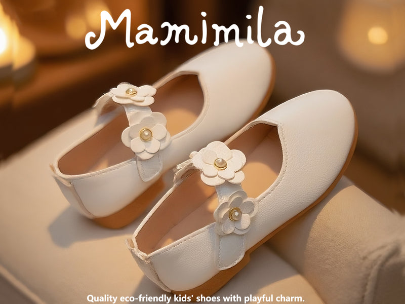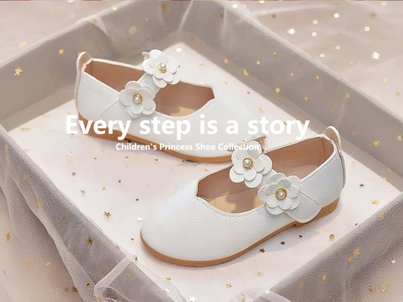 Elegant Design – Classic white Mary Jane shoes with delicate flower strap detail; the flower is embellished with a pearl center for a sweet and refined look.