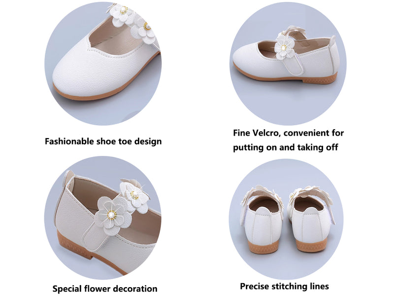 Girls Mary Jane Dress Shoes White Leather Flats with Pearl Flower Strap – Toddler/Little Kids Party Wedding Birthday Princess Shoes