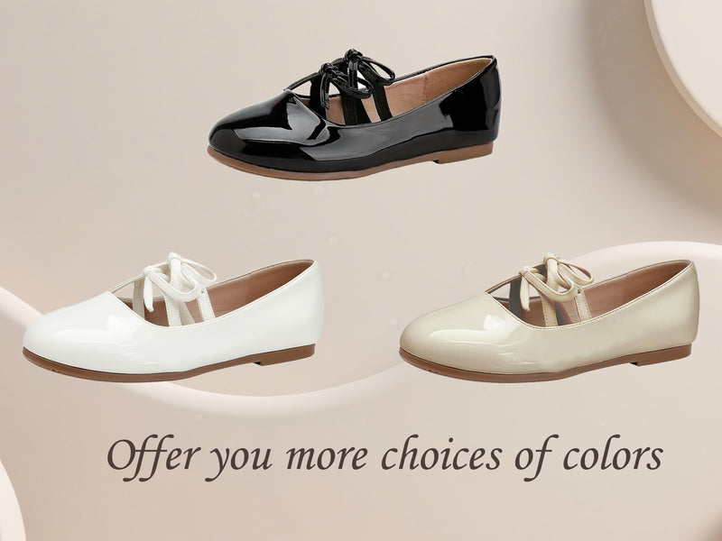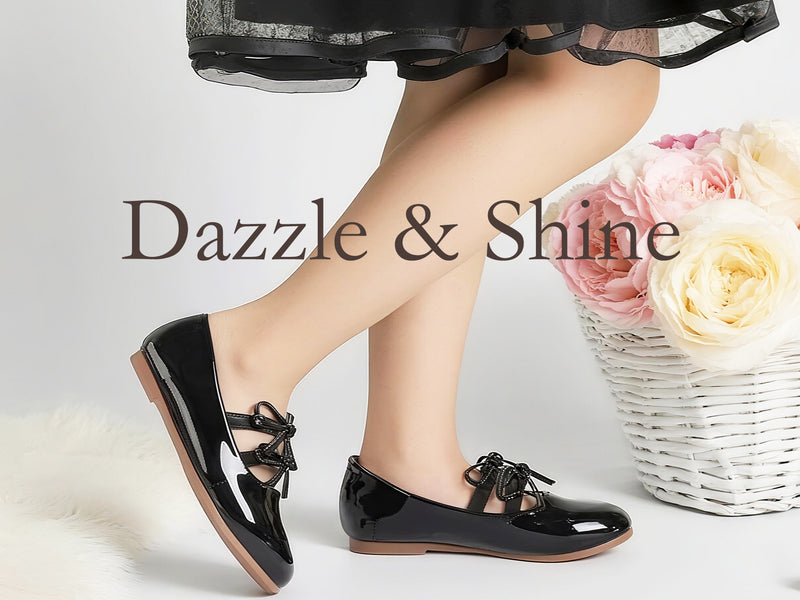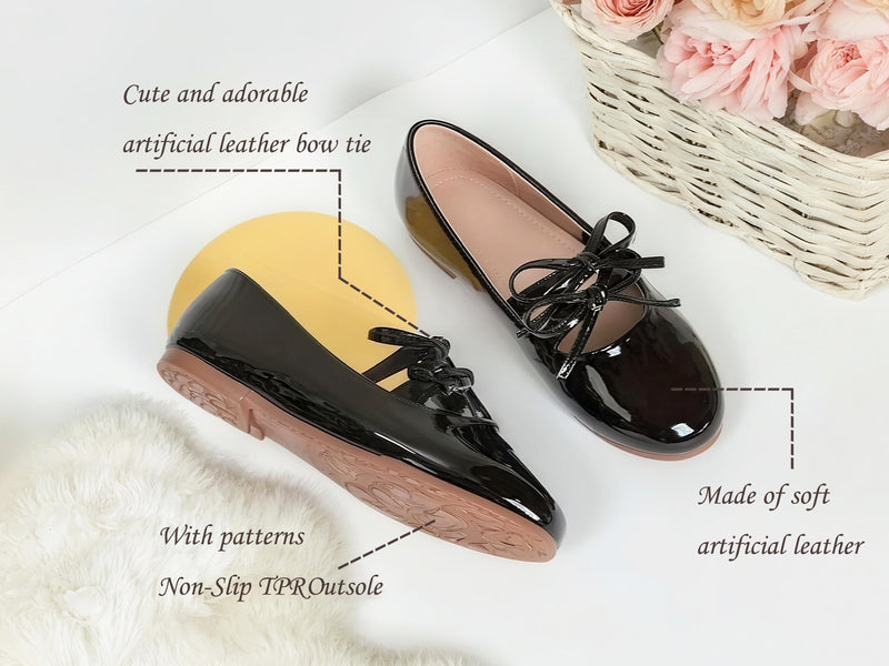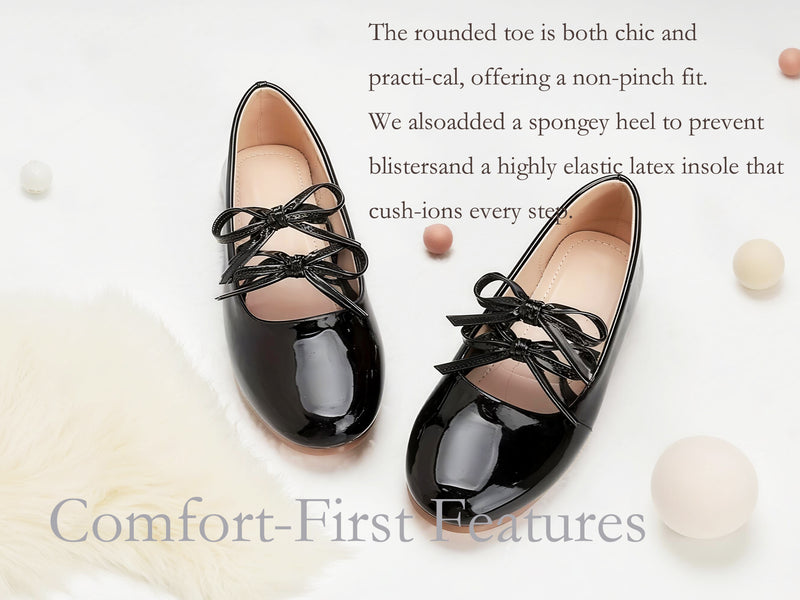 Girls Mary Jane Dress Shoes – Shiny Black Patent Leather Flats with Crisscross Bow, Cute Princess Shoes for Toddler & Little Kids