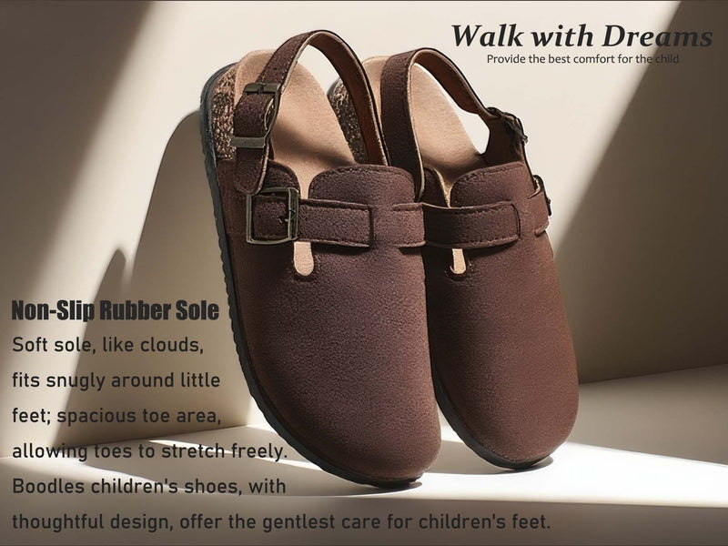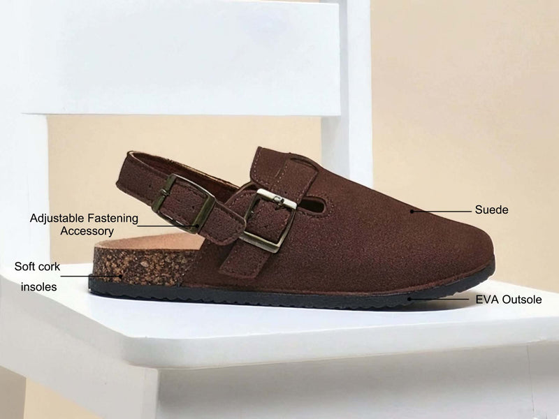 Men’s Closed Toe Birkenstock Style Sandals with Adjustable Double Buckle and Back Strap – Brown Suede Cork Footbed Casual Comfort Shoes