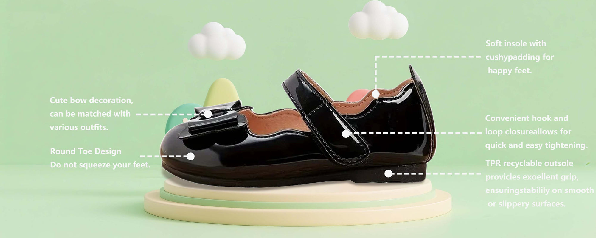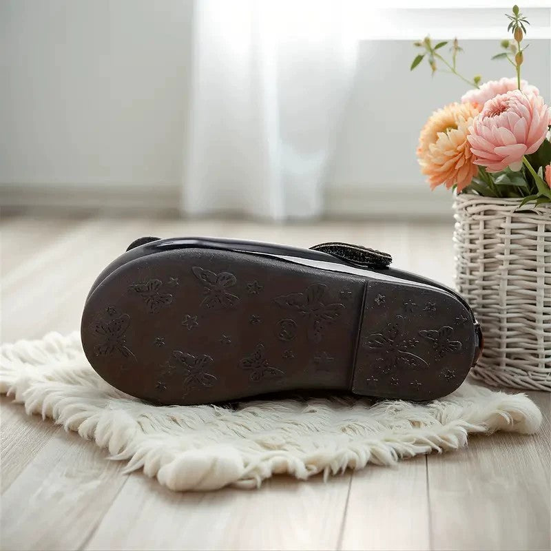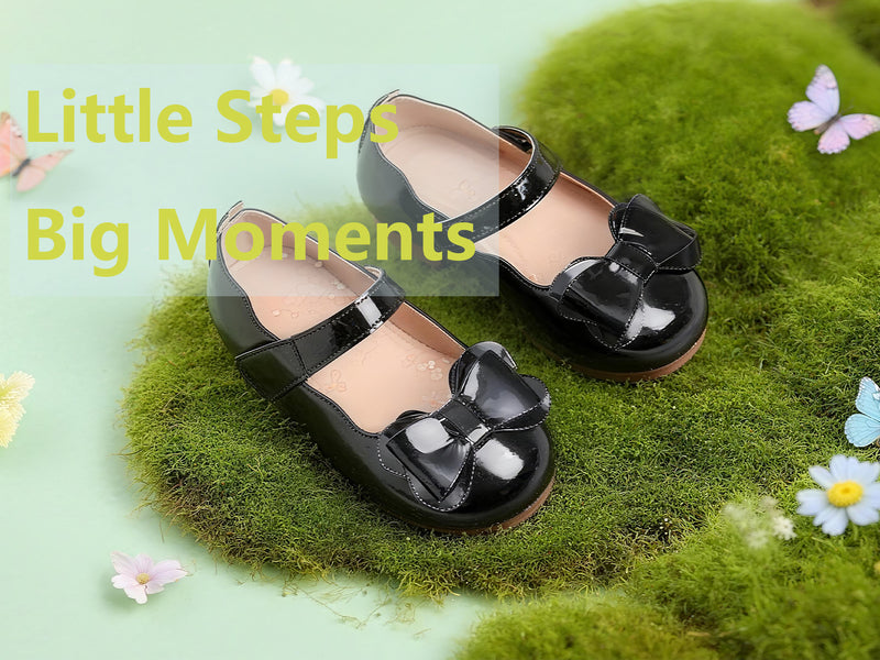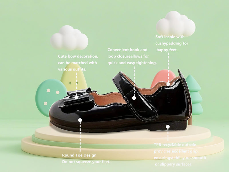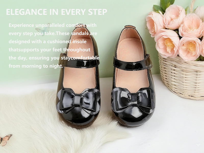 Girls Mary Jane Dress Shoes – Shiny Black Flats with Bow, Single Strap Princess Shoes for Toddler & Little Kids