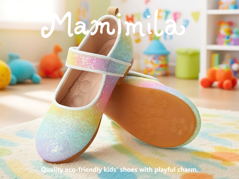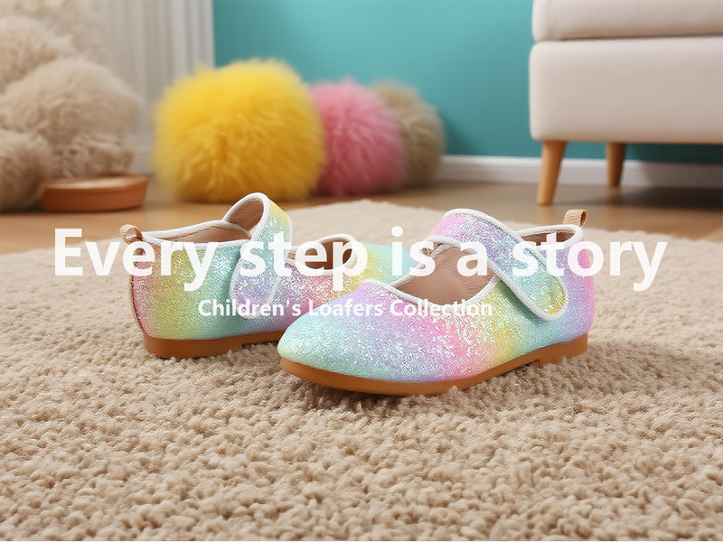 Girls Glitter Mary Jane Shoes – Colorful Sequin Gradient Dress Flats with Strap, Sparkly Princess Party Shoes for Birthday, Performance, Holida