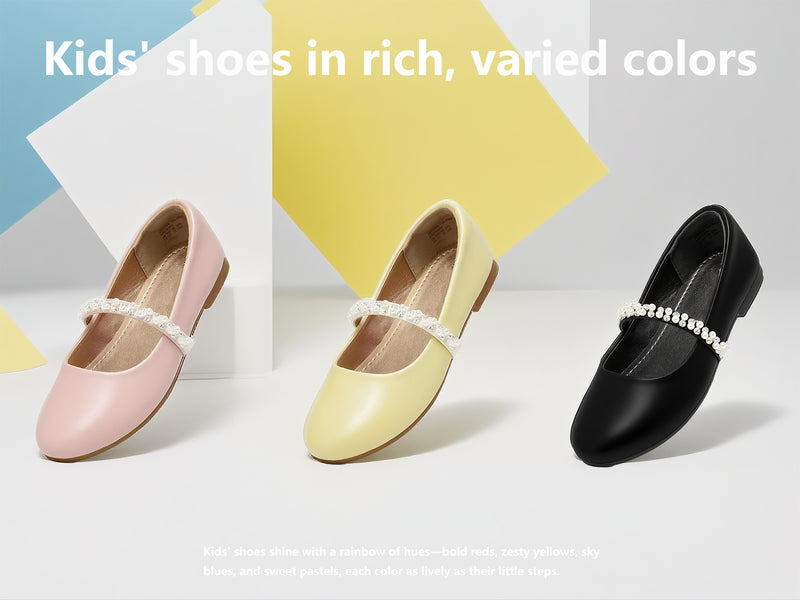 Elegant White Mary Jane Shoes – Designed with a classic white upper, these flats offer a timeless and sophisticated look for young girls.