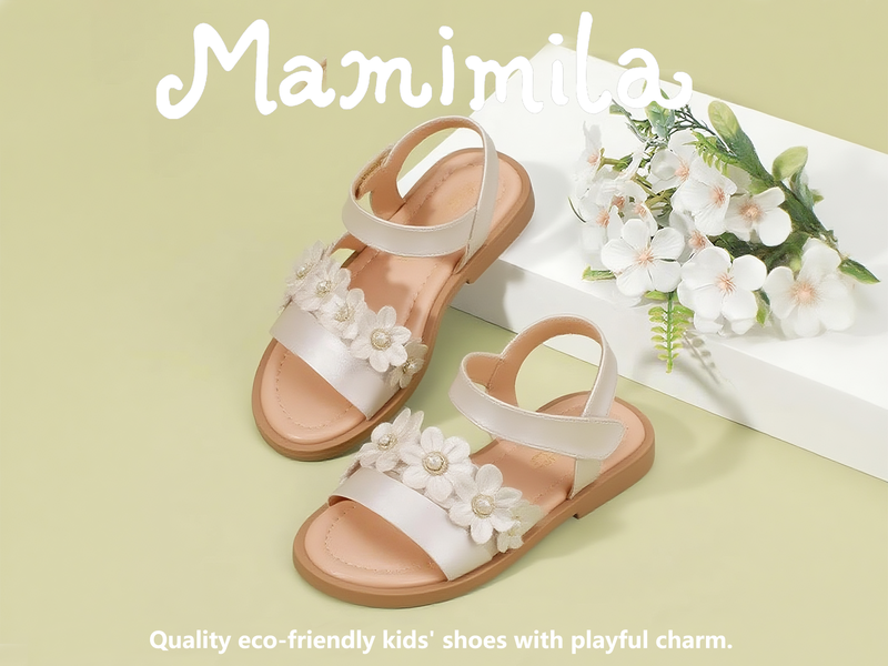 Girls Flat Sandals – Pearl Flower Dress Sandals with Cross Straps, Comfortable Summer Shoes for Outdoor Activities, Family Gatherings, Daily Wear
