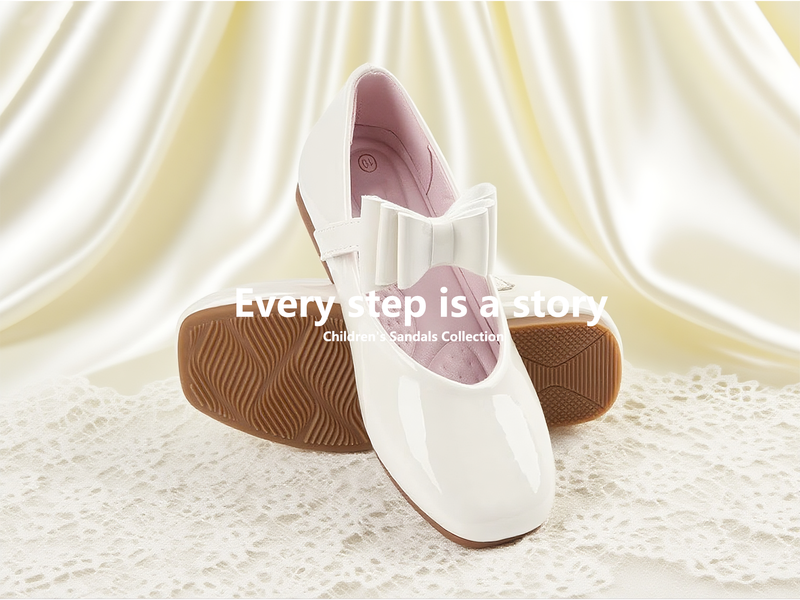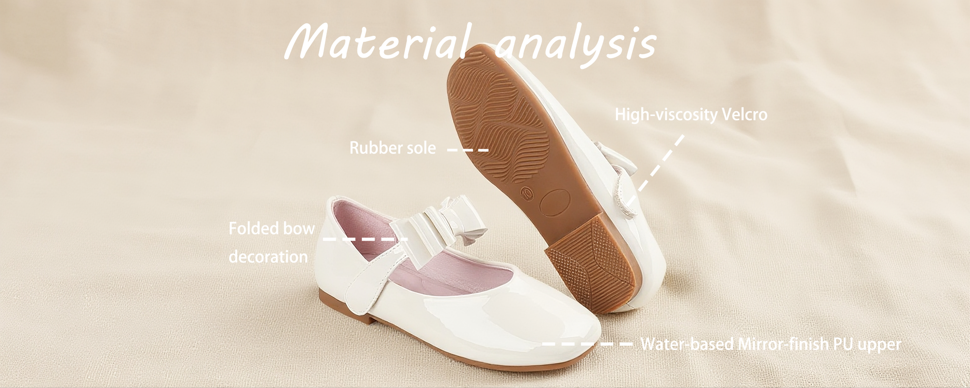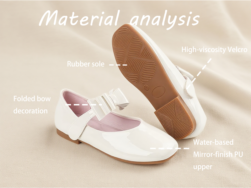 Shiny Patent Leather Upper – Made with glossy white patent leather that gives a stylish and elegant look, easy to pair with dresses or uniforms.