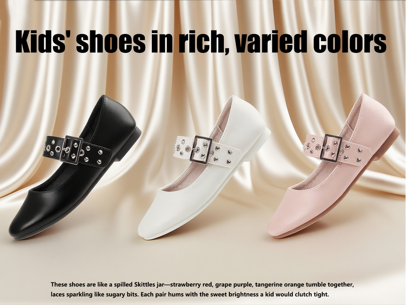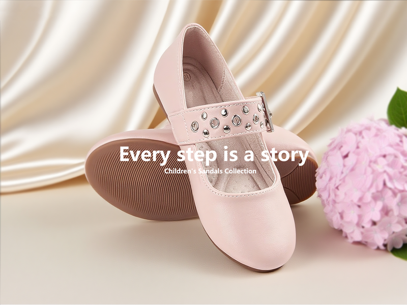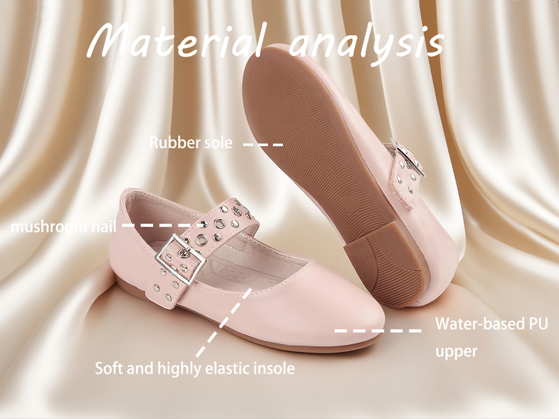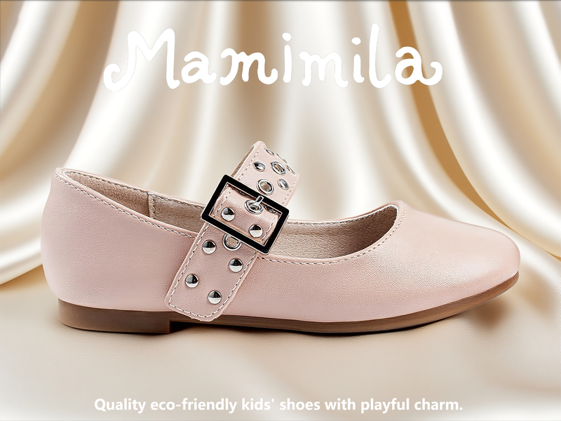 Girls Mary Jane Shoes – Pink Leather Flats with Metal Buckle & Studded Design, Cute Dress Shoes for Daily Wear, School, Party