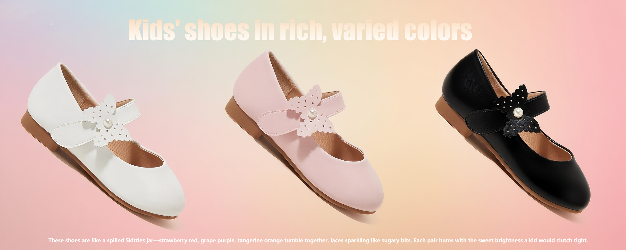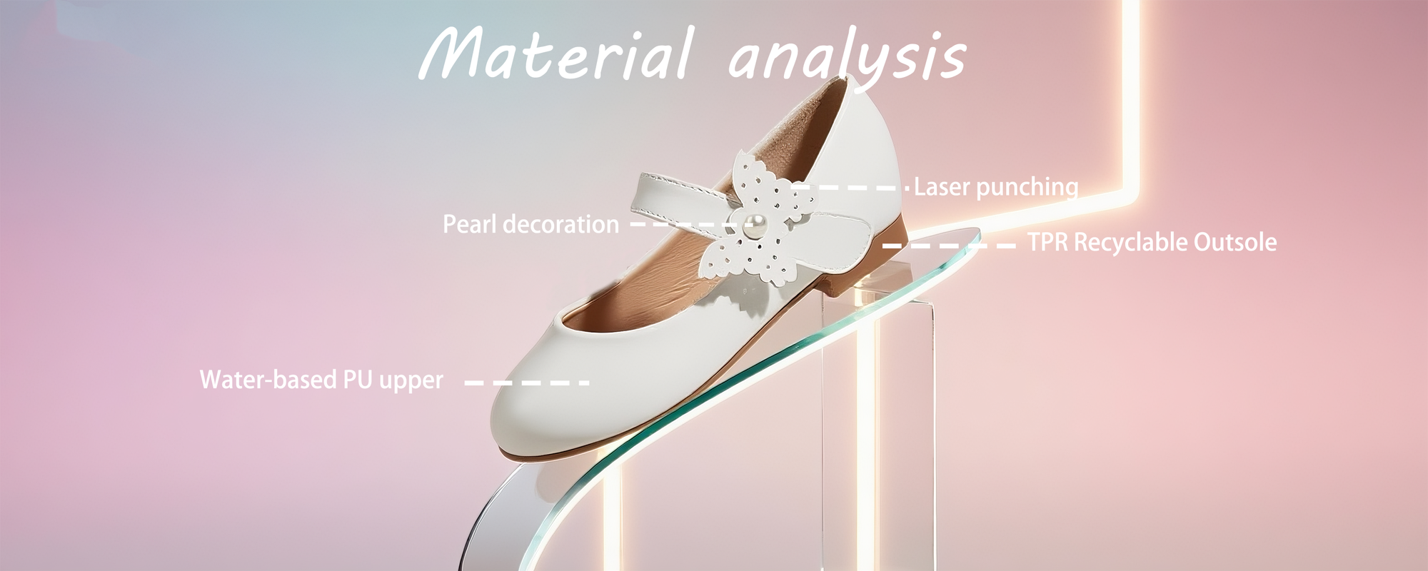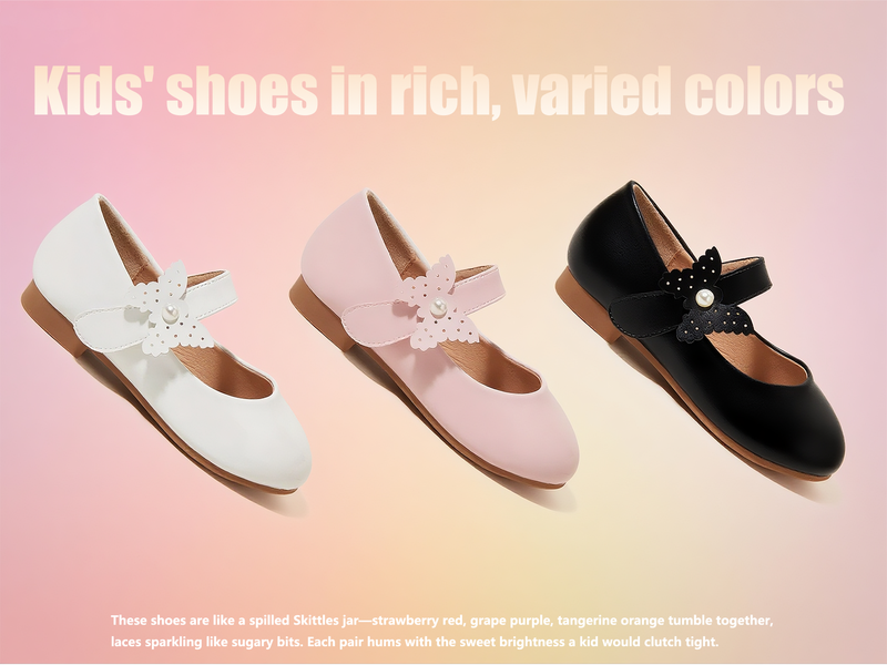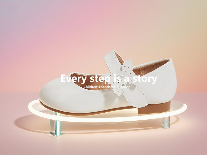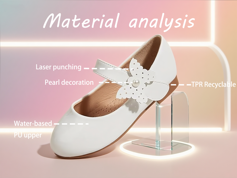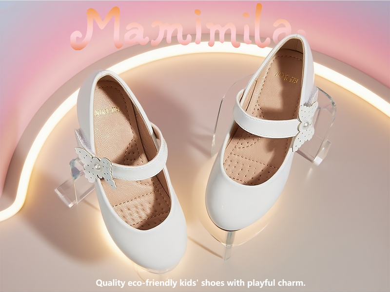 Shiny Patent Leather Upper – Made with glossy white patent leather, offering a stylish and eye-catching look for little girls.