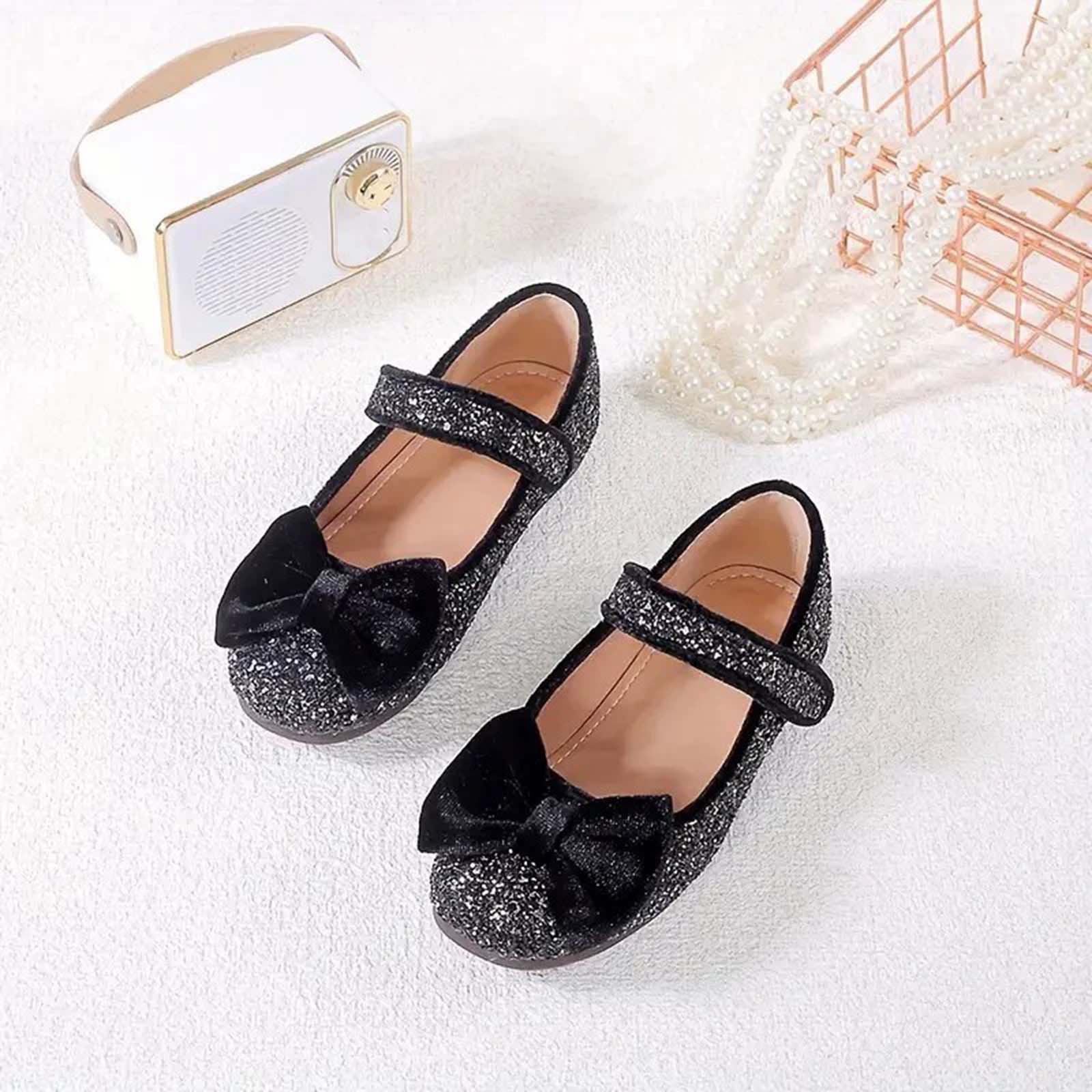 Charming Bow Accent – Finished with a black velvet bow on the toe, adding a sweet and elegant touch that little girls will love.