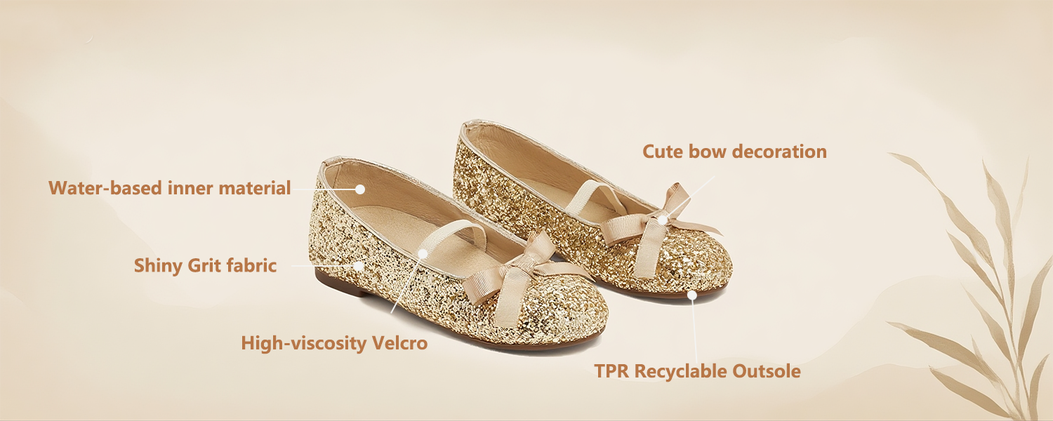 Girls Mary Jane Shoes – Gold Sequin Dress Flats with Bow, Sparkly Princess Party Shoes with Elastic Strap for Weddings, Performances, and Special Occasions
