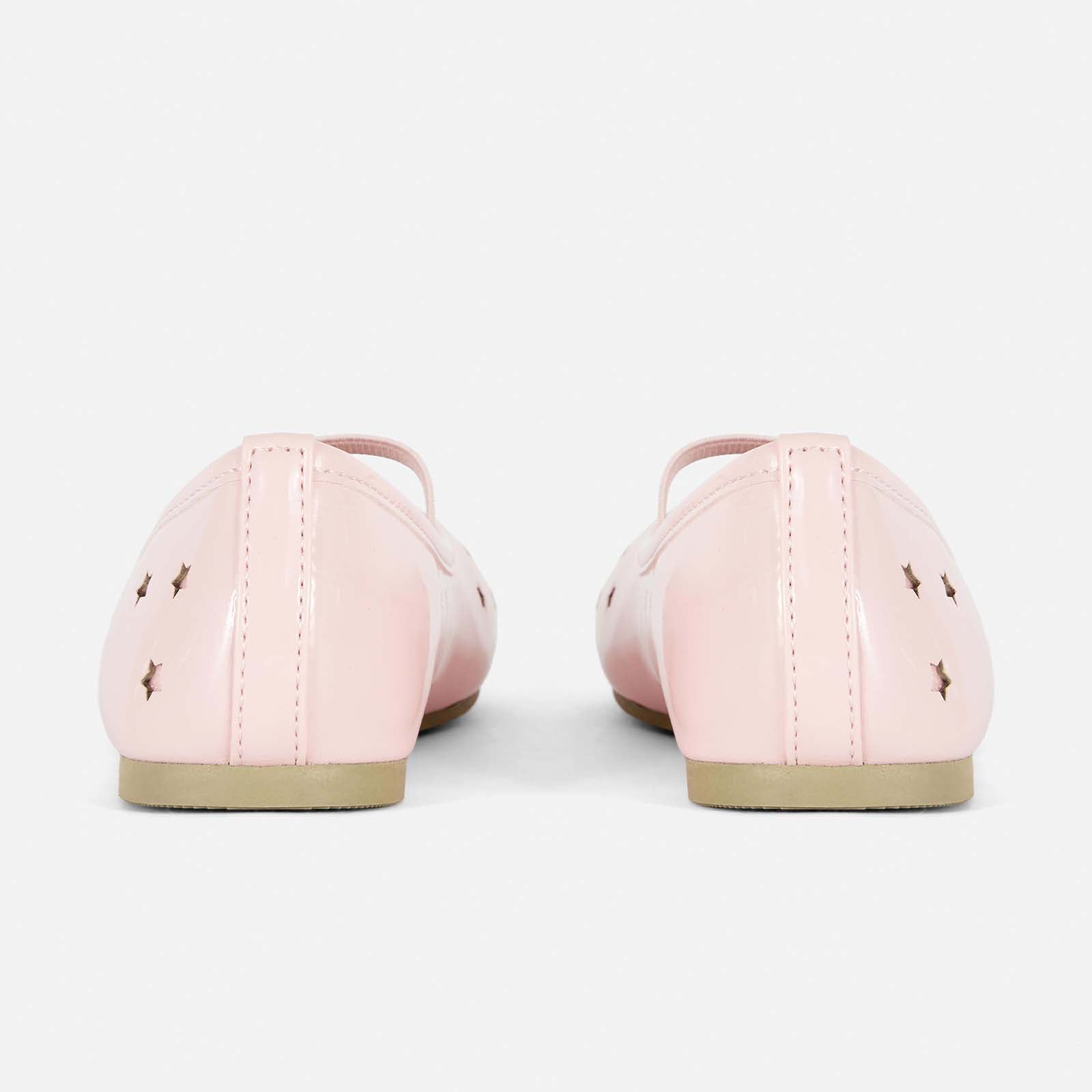 Girls Mary Jane Flats – Pink Leather Dress Shoes with Star Cutout Design, Elastic Strap, Comfortable School & Party Shoes