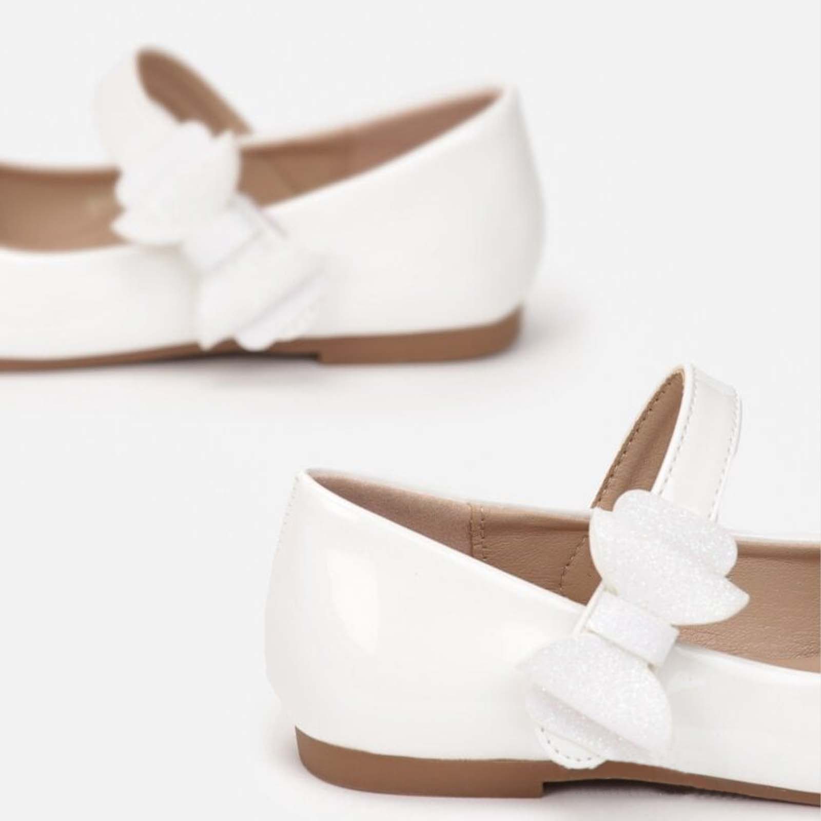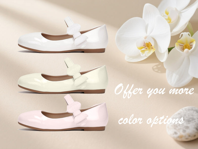Girls Mary Jane Shoes – White Patent Leather Dress Flats with Shiny Bow, Adjustable Strap, Cute School & Party Shoes