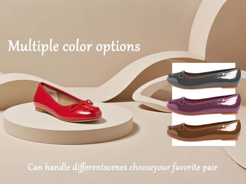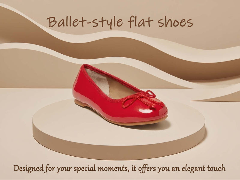 Girls Mary Jane Shoes – Red Patent Leather Dress Flats with Bow, Shiny Party Shoes for Girls, Cute School & Holiday Footwear