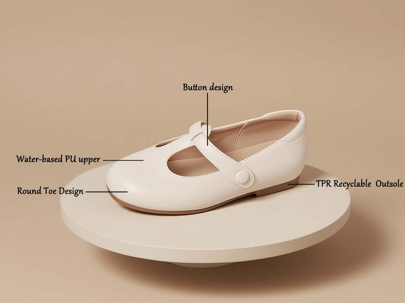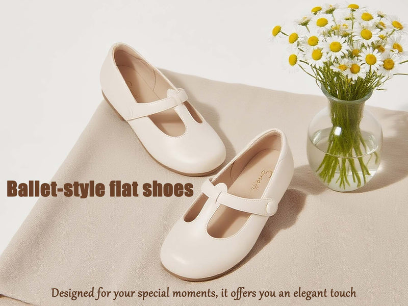 Girls Mary Jane Shoes – Ivory White T-Strap Dress Flats with Buckle, Classic School & Party Shoes for Girls
