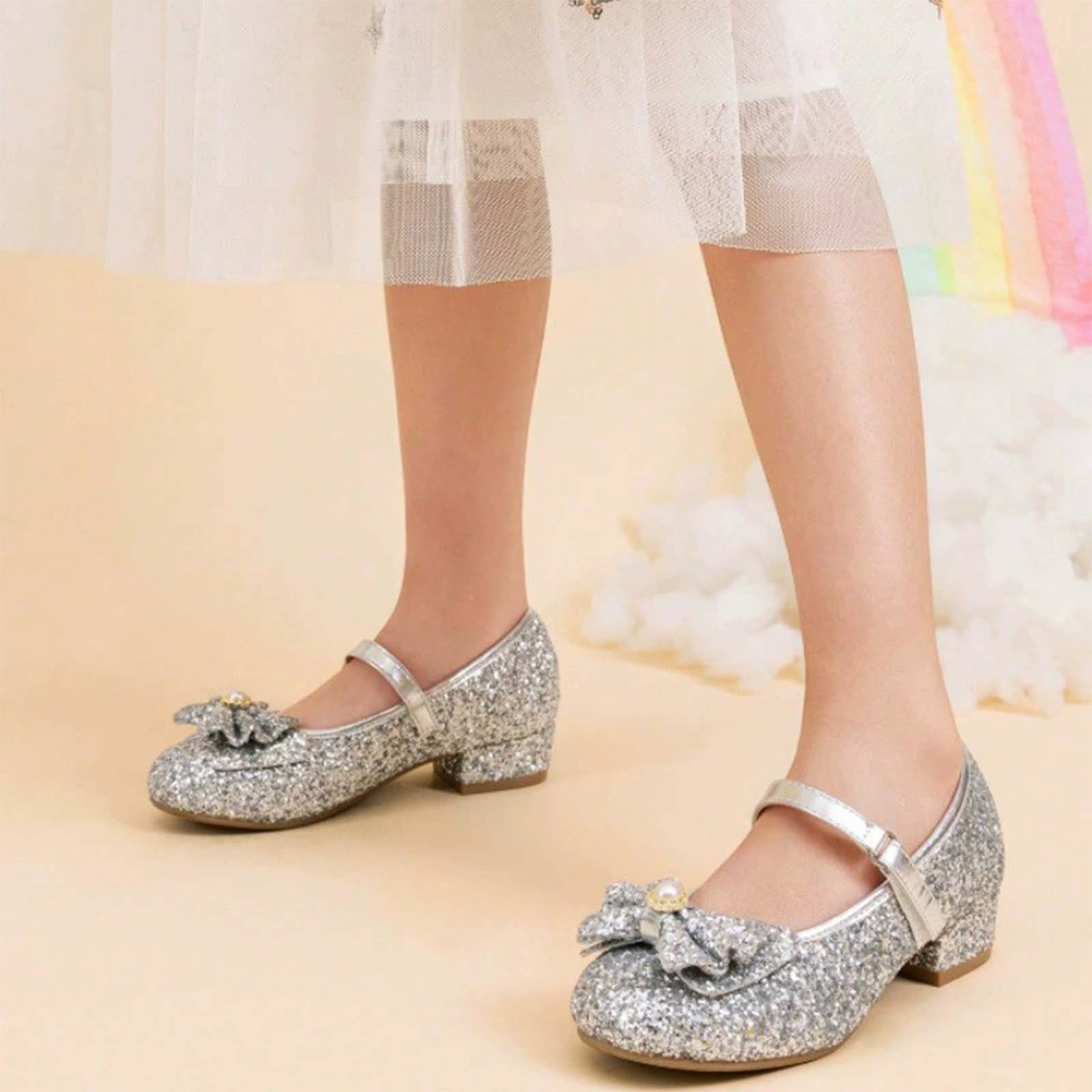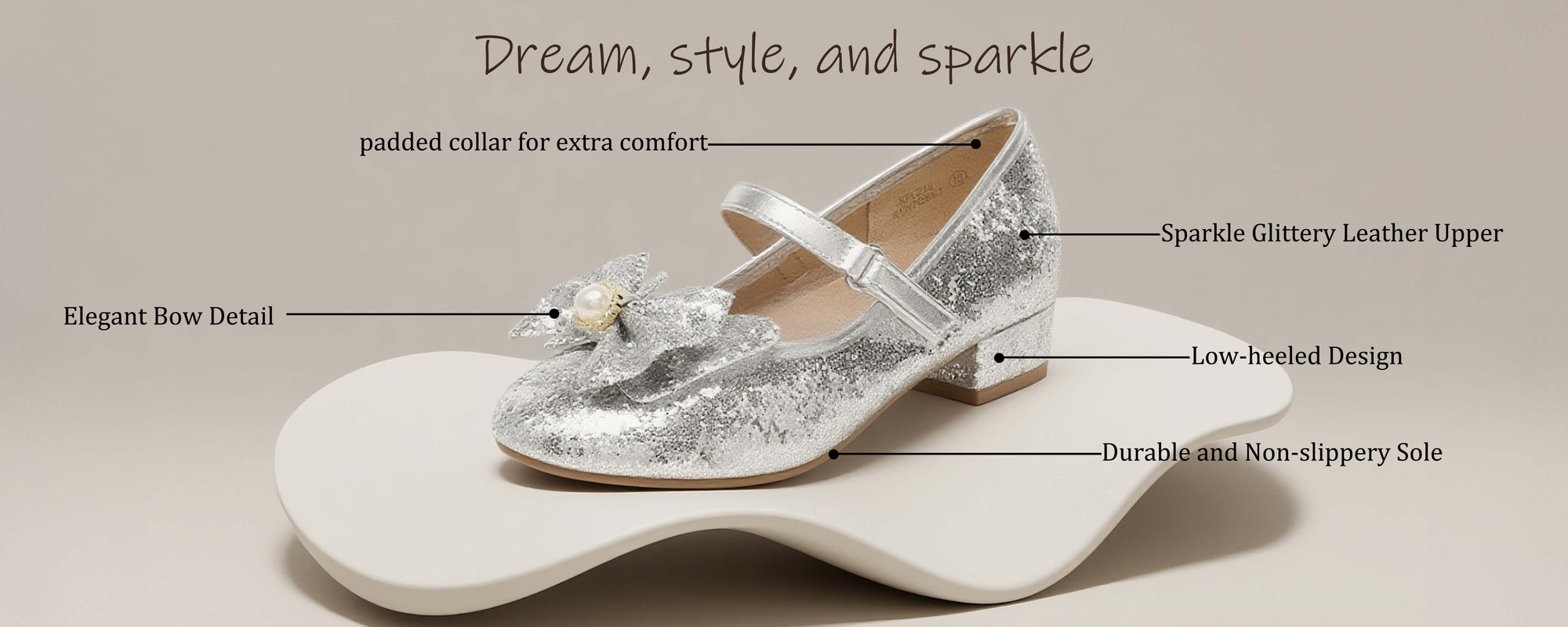 Sparkly Glitter Finish – Covered in shining silver sequins, these Mary Jane shoes create a dazzling look that makes little girls feel like princesses.